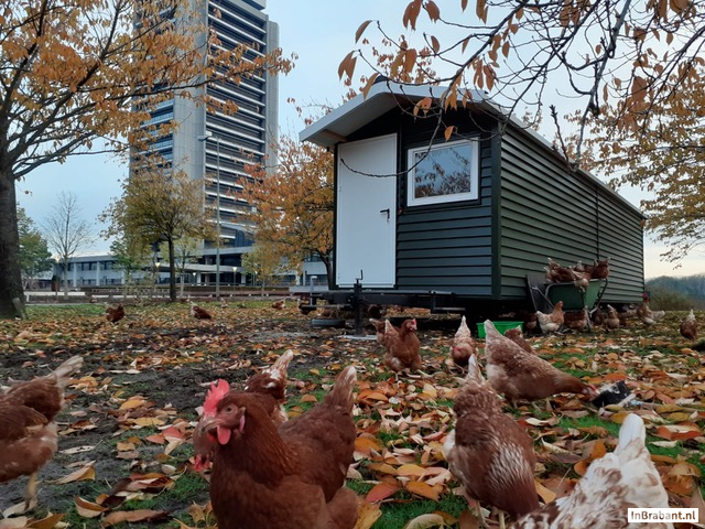 Op dertien plekken in Brabant vind je mobiele kip-caravans. Kippen scharrelen vrolijk rond en kunnen onbeperkt gras, kruiden, wormpjes en insecten pikken. Ze eten ook onkruid, zodat bestrijdingsmiddelen niet meer nodig zijn. Hulpboeren hebben een fijne dagbesteding én kunnen doorgroeien naar werk. De kakelverse eieren zijn te koop in eier-automaten. Ondernemers en zorginstellingen kunnen aanhaken bij deze Brabantse coöperatie in ontwikkeling!